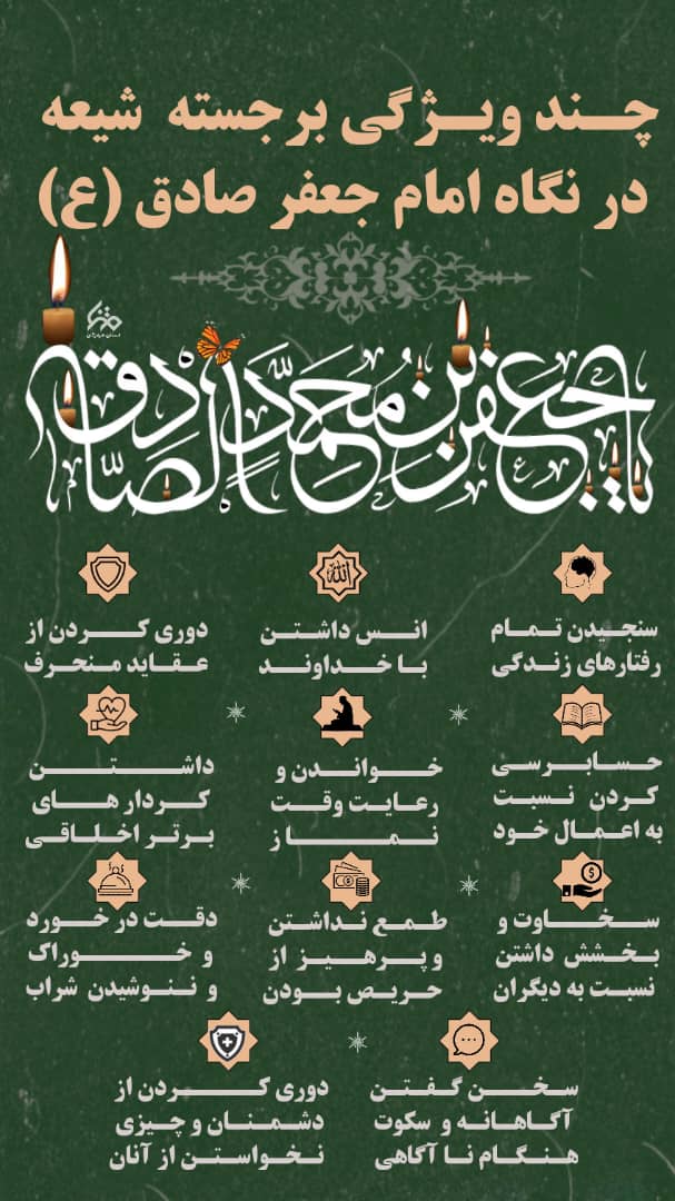 اینفوگرافیک شهادت امام صادق(ع) #اینفوگرافیک، جاسک جاسک جاسک, متنا جاسک 1404/02/07 7 اردیبهشت 1404 ویژگی های برجسته شیعه از نظر امام صادق(ع) آیا این نوشته برایتان مفید بود؟ بلی 0 خیر 0 اشتراکگذاری پست برچسبها #امام_صادق_جاسک_متنا جاسک جاسک
