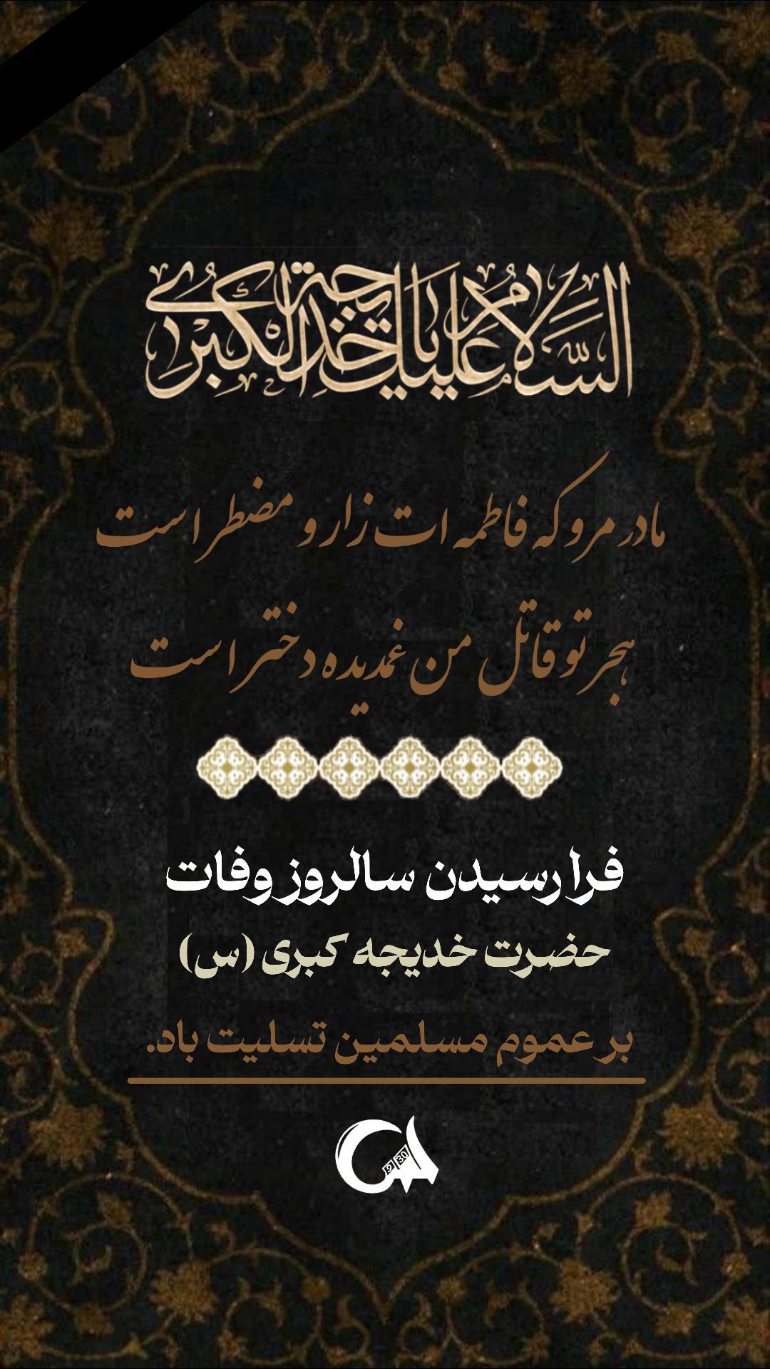 پوستر/شهادت حضرت خدیجه کبری پوستر بندرخمیر بندرخمیر, شمسا بندرخمیر 1403/12/24 16 فروردین 1404 مادر مرو که فاطمه ات زار و مضطر است هجر تو قاتل من غمدیده دختر است آیا این نوشته برایتان مفید بود؟ بلی 0 خیر 0 اشتراکگذاری پست برچسبها #ماه_امید_بندرخمیر_شمسا بندرخمیر •••|🇮🇷|••• . مرکزفضایمجازی تولیدونشـرآثاردیجـیتــالانقلاباسلامی استانهرمزگانجهانشهرتالابیویادگیرنده بــنـدرخــمــیر .