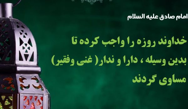 امام صادق علیه السلام: خداوند روزه را واجب کرد تا بدین وسیله دارا و ندار (غنی و فقیر) مساوی گردند