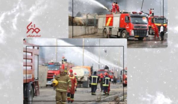 عکس نوشته درباره ی آتش سوزی اسکله شهید رجایی بندرعباس