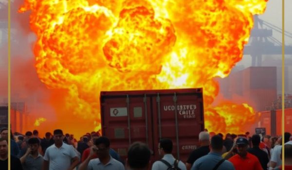 عکس نوشت درباره ی آتش سوزی اسکله شهید رجایی بندرعباس